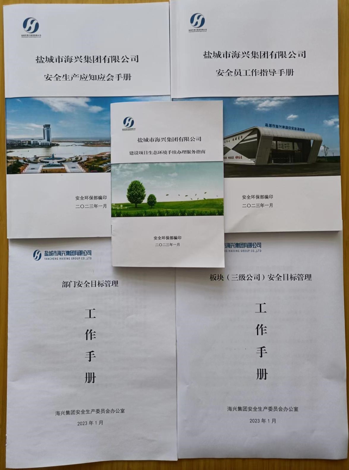 為了進一步強化集團安全環(huán)保工作,切實提高全員的安全環(huán)保知識與技能。近日,集團安全環(huán)保部編寫印發(fā)了《鹽城市海興集團安全生產(chǎn)應知應會手冊》、《鹽城市海興集團安全員工作指導手冊》、《鹽城市海興集團建設項目生態(tài)環(huán)境手續(xù)辦理服務指南》、《鹽城市海興集團部門(單位)安全目標管理工作手冊》等系列學習材料300余本,組織員工及項目相關人員學習。2023-04-21 -