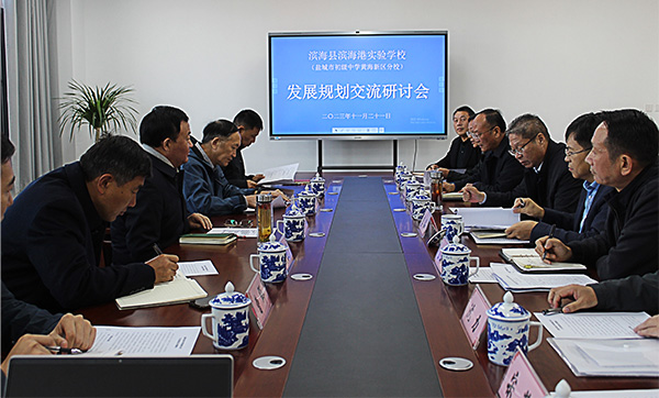 11月21日上午,市委教育工委書記、市教育局黨委書記、局長戴紅光一行到市初級中學(xué)黃海新區(qū)分校調(diào)研辦學(xué)情況,并召開學(xué)校發(fā)展規(guī)劃研討會。2023-11-22