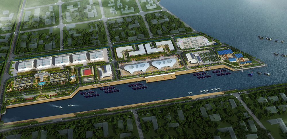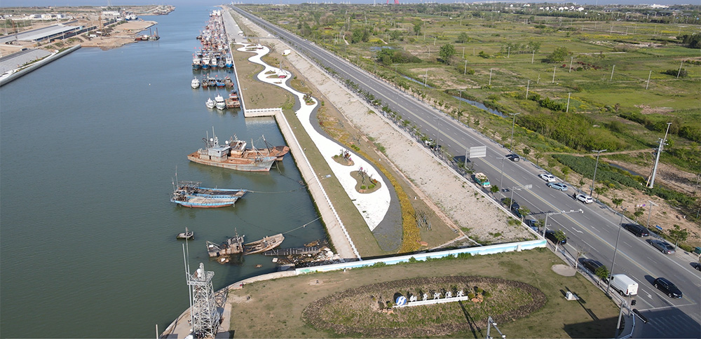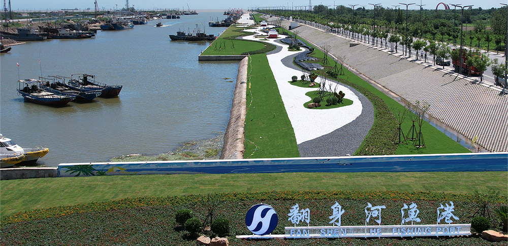 翻身河漁港升級改造項目按照國家一級漁港標準規(guī)劃建設,改造后的陸域面積達88萬平方米,水域面積達30萬平方米,最寬處達220米。水工部分設有1942米海堤、1345米護岸、2210米碼頭泊位。其中北側護岸779米,碼頭泊位1242米,南側護岸566米,碼頭泊位968米,共設置泊位66個,南北兩側各33個,合計可并排應急??考s1000艘270馬力的漁船。南岸碼頭為休息待泊泊位,北岸為生產性泊位,具有卸魚、加油、加冰、加水等功能,總投資約3.4億元(不含征地拆遷費用)。