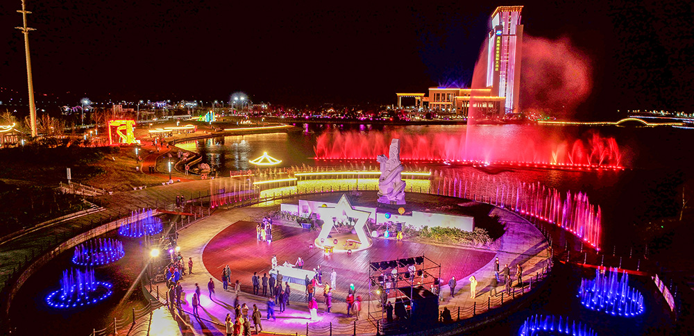 靈龍湖公園陸域面積330畝、水域面積370畝,是一座承載古黃河文化、淮河文化元素的復(fù)合型濱湖生態(tài)公園,采用“一島、一環(huán)、四片區(qū)”的空間格局,以綠為韻、以水為脈,將自然與生態(tài)完美融合,延續(xù)著兩河及海洋文化記憶。特色景點(diǎn)包括:親子樂(lè)園、水幕映畫(huà)、音樂(lè)噴泉、舞龍廣場(chǎng)、生肖廣場(chǎng)、網(wǎng)紅打卡點(diǎn)主題雕塑等景點(diǎn),打造生態(tài)自然的主客共享公共休閑空間。