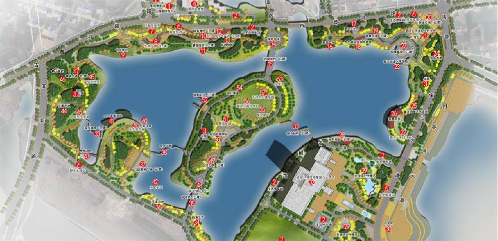靈龍湖公園陸域面積330畝、水域面積370畝,是一座承載古黃河文化、淮河文化元素的復(fù)合型濱湖生態(tài)公園,采用“一島、一環(huán)、四片區(qū)”的空間格局,以綠為韻、以水為脈,將自然與生態(tài)完美融合,延續(xù)著兩河及海洋文化記憶。